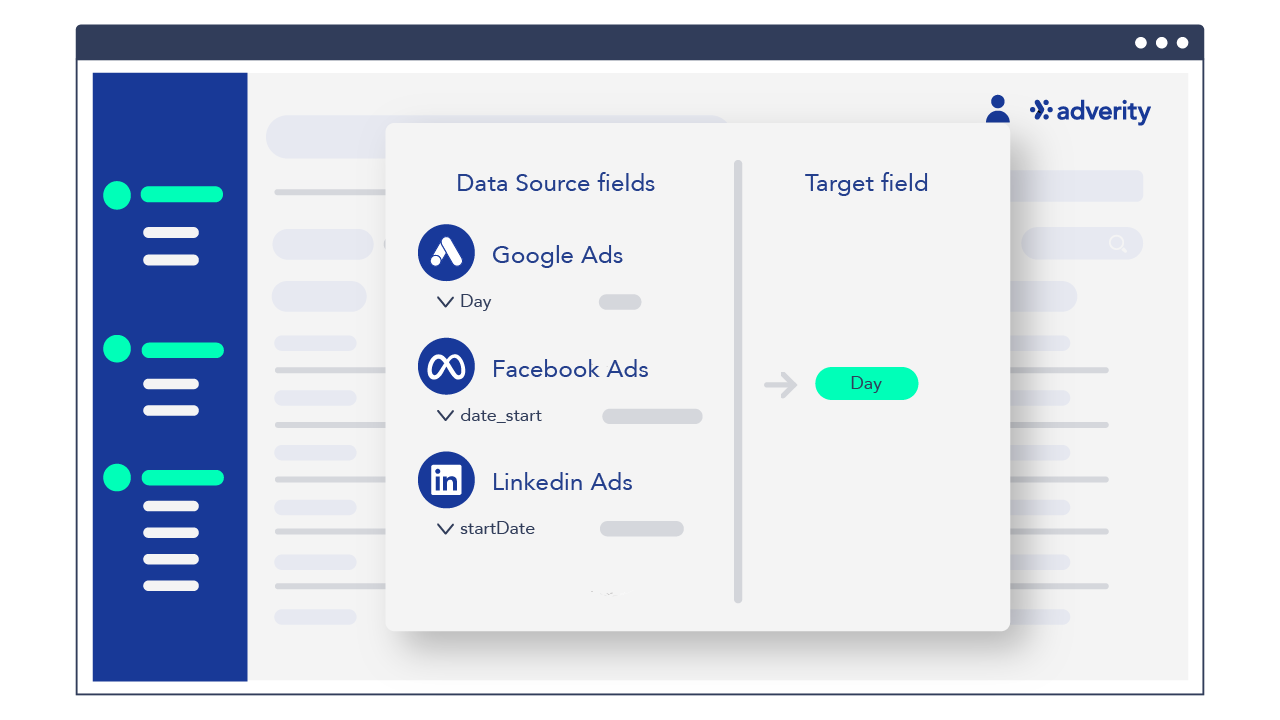 We know marketing data - standardize common dimensions and metrics to create a single marketing data model with Adverity’s intelligent Data Mapping feature.