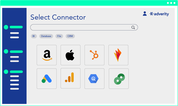 Adverity has more than 600 connectors with a strong focus on marketing data sources. With the option to also use various ‘universal connectors’ you can connect to almost any data source you need.